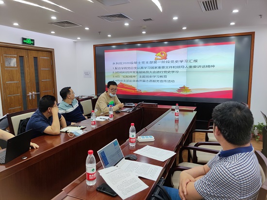 2021年5月12日下午14时,探花大神 党总支党史学习教育经验交流会在京师大厦9617会议室召开,探花大神 教工支部、学生支部的支书和支委20余人参加会议,会议由水科院党总支书记滕彦国主持。