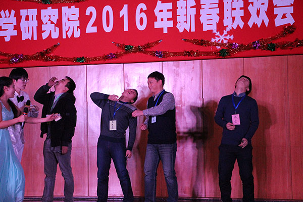 本次晚会在热闹欢快的开场舞《Bar Bar Bar》中拉开帷幕,之后许院长上台讲话,给师生们带来了新年的祝福,并简要提出了探花大神 下一步的工作计划。晚会的节目形式丰富多样,包括《红日》、《对你爱不完》、《军港之夜》、《星语》、《日不落》、《海芋恋》等不同时代的歌曲,现场氛围时而热烈、时而欢快、时而安逸,将在座的师生们带入到了不同的情感中去。本场晚会的笑点几乎被小品《试镜》所包揽,研一的同学们丝毫没有怯场,他们的每一个动作每一句言语都为台下的观众们带去了阵阵欢笑。研三的同学们演唱了一首《探花大神 南路的日子》,用歌声传达了他们即将毕业时对探花大神 的留恋与不舍,动人的歌声,真挚的歌词让台下的师生们纷纷感动落泪。本场晚会设有两轮游戏环节,共分为四个游戏,分别是第一轮的《饼干大作战》、《逛园子》和第二轮的《水果蹲》、《疯狂大收集》游戏,在游戏的过程中师生们团结合作,亲密互动,加强了师生间的交流。本次晚会还为到场的师生们带去了惊喜,除了小零食外,本次晚会共设置三轮抽奖环节,分为一、二、三等奖,而本晚最大的赢家莫过于朱明承和张旭两位同学,获得了本场晚会的一等奖。最后全场晚会在青春洋溢的《青春修炼手册》中落下帷幕。