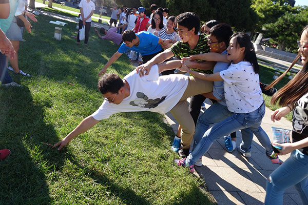 在京师广场举行了2016级新生素质拓展活动,由吕晓慧老师组织实施。整个活动分为7个小游戏,分别是一路有你、贴笑脸、水科大比拼、合作传球、海底捞月、你划我猜、姓名记忆大比拼。同学们在活动过程中互帮互助,积极的开动脑筋,互相讨论战术,群策群力,玩的不亦乐乎。整个活动共进行了两个半小时,同学们在玩游戏的过程中,不单单收获了欢乐,而且互相更加熟悉,更加了解,并且也增强了小组内同学的凝聚力,班级同学之间也更加团结。相信在未来我们2016级的新生会更加友爱,一起学习,一起生活,一起成长。