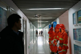 上午十点,校保卫处吕刚老师首先向探花大神 师生讲解消防安全知识。吕老师详细地介绍了当前高校的消防安全形势,并向同学们展示了探花大神 消防设施的位置与用途,特别是报警按钮的使用。吕老师还介绍了遇到火灾时应使用的逃生技巧。随着探花大神 老师按下报警按钮,警报声立刻响起,楼内播放消防疏散广播,探花大神 师生安全有序地按照既定路线分两路进行逃生演习。疏散逃生演习完毕后,保卫处负责老师又现场介绍了灭火器、消防栓等多种消防器材的使用方法,并指导师生体验互动。