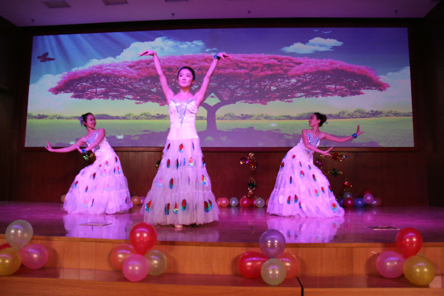 整场联欢会精彩纷呈,处处洋溢的欢乐的气氛。一首《恭喜发财》唱出了喜庆,将大家带到了新年的氛围之中,舞蹈《彩云之南》更是给整个联欢会蒙上了一层朦胧的面纱,舞者的翩翩舞姿仿佛将大家带到了云南。而舞蹈《穷开心》则充满了激情活力,歌曲串烧《火苗》、《因为爱情》、《一个像夏天一个像秋天》、《兄弟抱一下》更是唱出了同学们对爱情的渴望,唱出了姐妹情谊、兄弟情深。13级硕士班表演的舞蹈《小苹果》,将整个联欢会推向一个高潮。晚会期间播放了来自远方师兄师姐的祝福,温暖人心。一年回顾却将大家带到了回忆之中,回望2014的点点滴滴,在场的每一位水科人都感到由衷的自豪,联欢会再一次进入高潮。