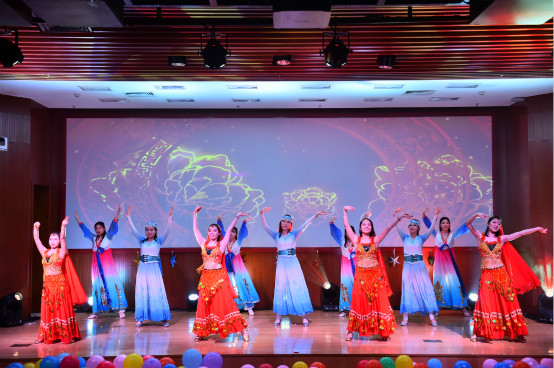致辞结束后,歌曲串烧《风吹麦浪》、《私奔到月球》、《明明白白我的心》、《口琴独奏butterfly》以深情款款的歌声和甜美悠扬的旋律让观众沉浸在一片温馨与美好之中。贴近研究生生活的小品《研途趣事》以风趣幽默的动作和诙谐调侃的语言让全场观众捧腹不止。教师代表表演的诗朗诵《水科记忆》带领大家一起回味了水科院的2018年。研三的师兄师姐们给大家带来的舞蹈《青春舞动》彰显了水科人的青春活力。极具创意的相声《师大初体验》赢得了全场观众的阵阵欢呼。民族舞串烧《民族梦与火》以极具民族特色的优美舞姿吸引了全场观众的眼球。