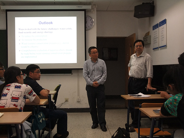 徐宗学教授主持了本次学术讲座,并对陈骥副教授的到访表示热烈欢迎。《水文模型》为研究生双语教学课程,为同学们提供了解当前国内外研究热点、与国内外知名教授交流学习的宝贵机会,借助此平台,陈骥副教授首先用全英文介绍了其团队研发的陆面模式中一个新的水库模拟模型,重点介绍了模型的背景和机理。接着又从人口、水资源等方面分析了世界大坝的建设趋势。讲座结束后,广大师生与陈骥副教授进行了广泛的交流与讨论。通过参加本次讲座,同学们不仅了解到了水库模型方面的知识,同时也锻炼了用英文进行学术交流的能力。