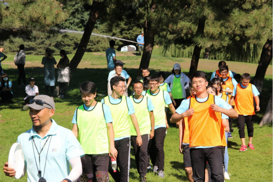 接下来进行了本次素质拓展的重头戏--飞盘比赛,各小组展开了激烈的竞争,最终决出胜负。在游戏过程中需要慢速跑动, 所以能锻炼腿部。由于经常跑跑停停、 变换方向,所以身体的敏捷度和平衡力也可以得到增强。在上午比赛前的联系中,同学们便开始丢飞盘,由于同学们都是第一次接触此运动,且有不小风力的影响,所以丢的丢偏,接的接不到。大家想着各种办法互相配合帮助,相互鼓励,在经历几次失败之后,大家就能很平稳的接住飞盘。