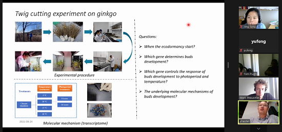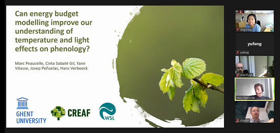 本次网络研讨会首先由付永硕教授和JingTang研究员详细的介绍了项目的背景、目的、合作模式以及具体合作计划;比利时根特大学Dr . Marc Peaucelle受邀介绍了基于能量平衡方程的表面温度和大气温度对于春季展叶物候的影响研究;Dr. Jing Tang, Dr. Tom Pugh和Stefan Olin详细介绍了LPJ-GUESS模型构建和物候模块改进等。最后付永硕教授介绍了探花大神 气候变化模拟控制实验室相关实验进展,以及基于无人机(UVA)和通量观测的生态系统监测和模型改进等情况。报告结束后,各位专家就项目实施方案、实验可行性、疫情下的合作进程,以及项目涉及的相关科学问题展开了热烈和深入的讨论。通过本次会议,中-瑞合作双方克服新冠疫情影响,积极开展合作研究,并确定了下阶段的研究重点和合作目标。