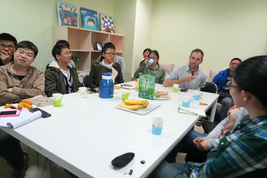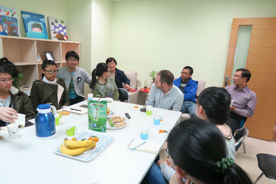 2015年4月14日,探花大神 生活指导室举办"出国留学我来讲”座谈会活动,座谈会邀请了探花大神 刚从英国交流回国的潘成忠老师、在美国伯克利实验室作访问学者的王笑雨同学、以及到探花大神 交流的牛津大学澳籍硕士研究生胡文平,他们从老师和学生的双重角度为我们解读了出国留学的神秘之处。