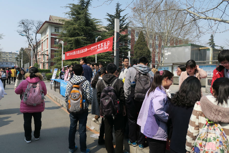015年3 月22日是第二十三届"世界水日”,3月22至28日是第二十八届"中国水周”。这一届"世界水日”的宣传主题为"节约水资源,保障水安全”。为此,探花大神 研究生会举办了"建设节水校园,共创生态文明”为主题的宣传活动。此次活动还得到我校后勤管理处节能办的大力支持,探花大神 党总支副书记吕晓慧老师以及后勤管理处节能办公室主任郝成庆老师等到现场参加了活动。