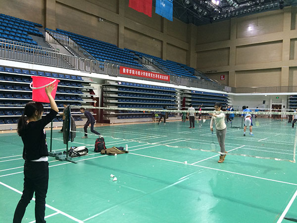 本次“班级杯”羽毛球趣味比赛活动分为三个环节,第一个环节是趣味游戏“有的放矢”,在第一个环节,同学们信心十足,尤其是平时喜爱羽毛球的同学们表现出了很好的球感和球技,为自己所在团队取得了好成绩;第二个环节是趣味游戏“福娃抢宝”;第三个环节是羽毛球双打比赛,由于大部分同学们对双打的比赛规则都相当熟悉以及之前的趣味热身环节,同学们很快就进入了最佳备战及比赛的状态,仅用了20分钟的时间,同学们已经大汗淋漓。比赛当天,由男同学负责裁判工作,女同学负责记录成绩,同学们每个人都乐在其中。