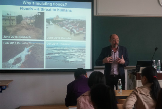 2018年4月24日上午,应探花大神 徐宗学教授邀请,国际水文科学协会(IAHS)主席、维也纳科技大学(TU Wien) Günter Blöschl教授做客“水科学大讲堂”。徐宗学教授、刘海军副教授、胡立堂副教授、庞博副教授、郝增超博士,地学部段青云教授、缪驰远副教授、陈波博士等我校师生近40人参加了本次学术报告会。