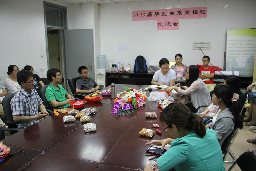 2013年6月4日晚,由研工部主办,探花大神 生活指导室协办的"2013届毕业生求职经验交流会——求职面对面”在探花大神 会议室成功举办。本次活动由探花大神 生活指导室助管都莎莎主持,分别邀请张欣、张意、李帅冉、李三百、刘晓、范富强等毕业生交流了就业、考博、出国深造的经验。并特邀探花大神 团委书记吕晓慧老师详细介绍2013届的就业。