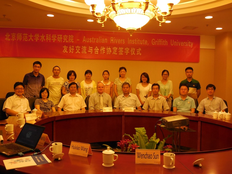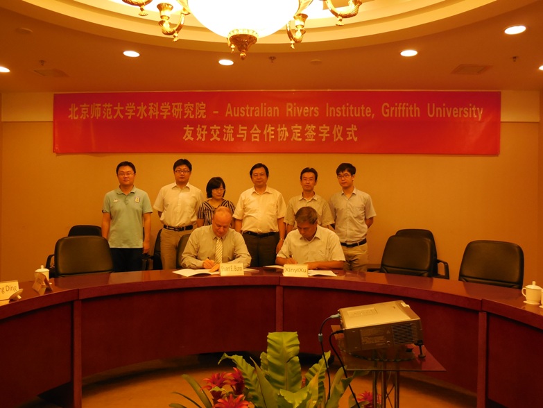 2013年8月9日,澳大利亚Griffith大学澳大利亚河流研究所所长Stuart Bunn教授访问探花大神 ,与许新宜院长共同签署了探花大神 与澳大利亚河流研究所的友好合作与交流协议(MOU)。许新宜院长、徐宗学副院长、丁爱中副院长、王会肖教授与探花大神 相关教师和博士硕士研究生近20人参加了签字仪式。