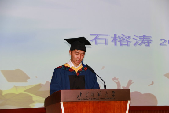 随后,郝芳华校长和宋永会院长为博士毕业生颁发博士学位证书并扶正流苏,探花大神 徐宗学教授、王金生教授和滕彦国教授为硕士毕业生颁发硕士学位证书并扶正流苏。毕业生代表尹文杰博士和石榕涛硕士分别发言,表达了对老师的感激之情,回忆了水科生活的点点滴滴,并为母校送上了真挚的祝福。