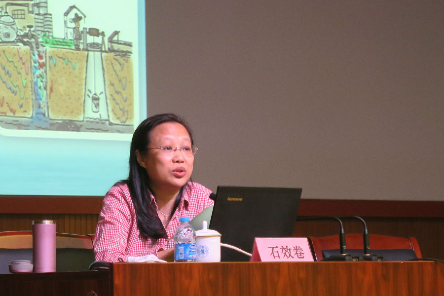 2015年4月16日"水十条”重磅来袭,是我国环境保护领域的又一重大举措,充分彰显了国家全面实施大气、水、土壤治理三大战略的决心和信心。石效卷处长主要从"背景情况、起草过程、主要内容、亮点解析”四个方面为我们诠释"水十条”。该计划共计十条35项具体措施,把政府、企业、公众攥成一个拳头,向水污染宣战。石处长强调它是继"大气十条”之后,我国出台的又一项重大污染防治计划,涵盖了对工业水污染、城镇水污染、农业污染、港口水环境、饮用水、城市黑臭水体等问题的治理。她指出"水十条”不仅以量化指标进行了细化要求,规定了截止时间,还首次明确了各地方和部委的职责清单,更加注重责任落实。讲座最后,石处长强调水是万物之母、生存之本、文明之源。良好的水环境,是美丽中国建设的关键基础,是生态文明建设的应有之义。只有蓝天常在、绿水常在、青山常在,才能实现伟大的中国梦!