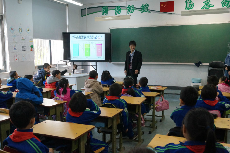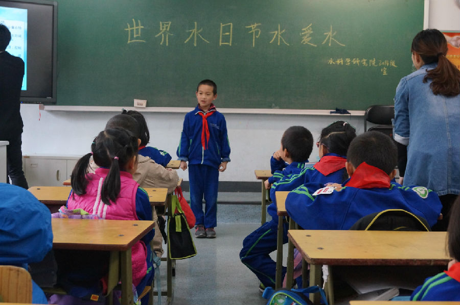 4月13日,探花大神 14级硕士研究生党支部二十余名学生党员和积极分子在探花大神 党总支的倡议下,赴北师大实验小学为二年级小朋友宣讲节水护水知识,提高其节水护水意识。